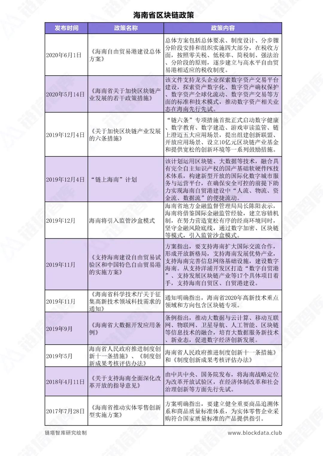 自2018年10月8日“海南自由贸易试验区和中国特色自由贸易港区块链试验区”正式设立,并印发《中国(海南)自由贸易试验区总体方案》以来,海南关于区块链政策的消息接踵而至。