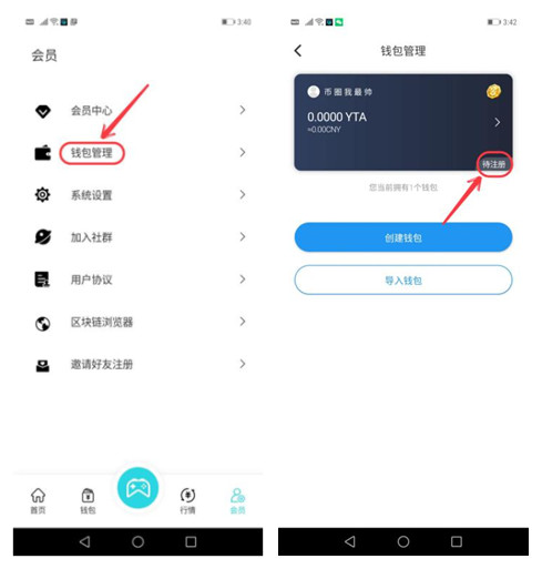 第十步、点击“钱包管理”,跳出下一页,再点击“待注册”,如下图: