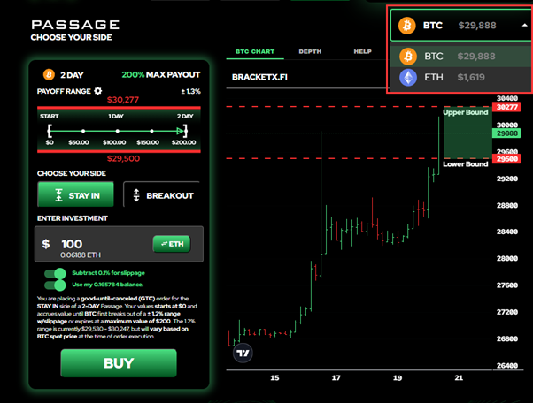 这里举例 BTC Passage 产品的玩法。
